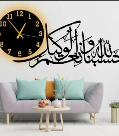 149.00 AED – 358.50 AEDPrice range: 149.00 AED through 358.50 AEDHasbunAllaha Wanimal Wakeel beautiful Islamic Wall Clock with Light