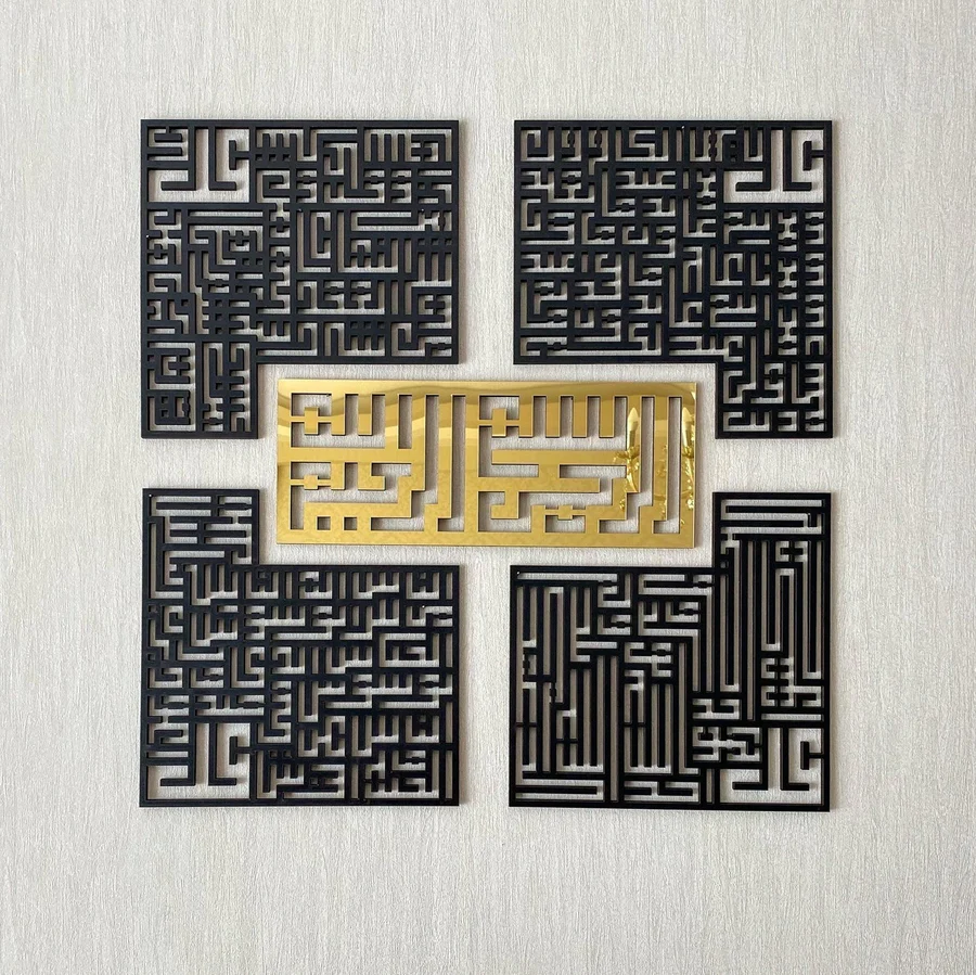 4 Quls Kufic Bismillah Acrylic Islamic Wall Art – A Modern Expression of Faith and Elegance