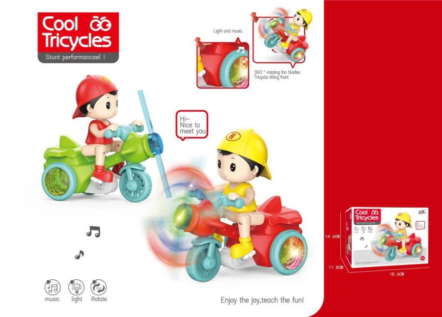Cool CO Stunt Tricycle Toy | Light, Music & 360° Rotating Fan Blades | Fun Ride-On Action for Kids | Front-Sitting Design