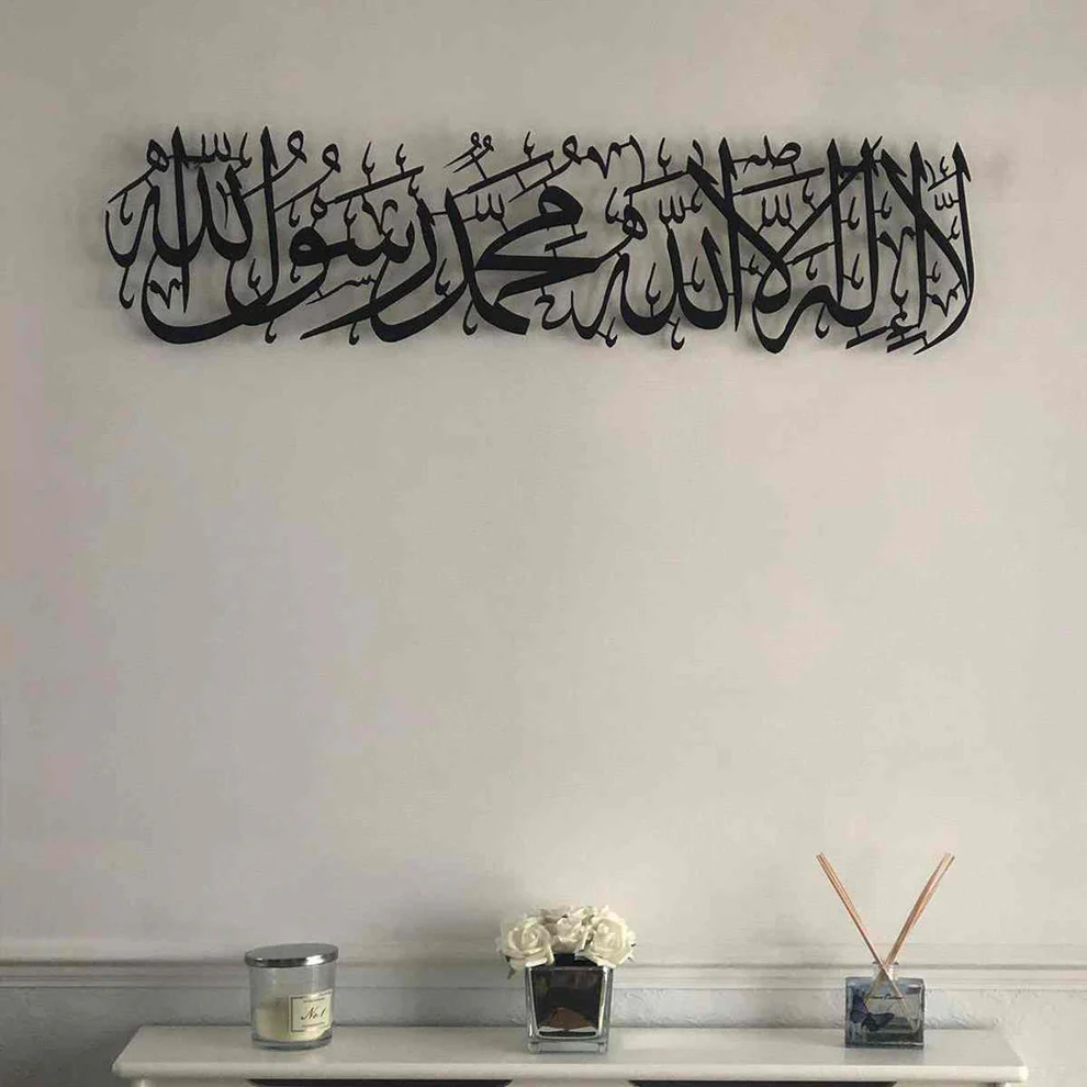 This wall decor, adorned with the First Kalima “There is no god but Allah, and Muhammad is His messenger” in horizontal Islamic calligraphy, symbolizes both unity and eternity in Islamic culture. Ideal for Ramadan Decor, Eid Mubarak, or as a thoughtful Muslim gift, it enhances home decor with its beautiful Islamic design. See other Islamic Wall Decors by clicking here!
