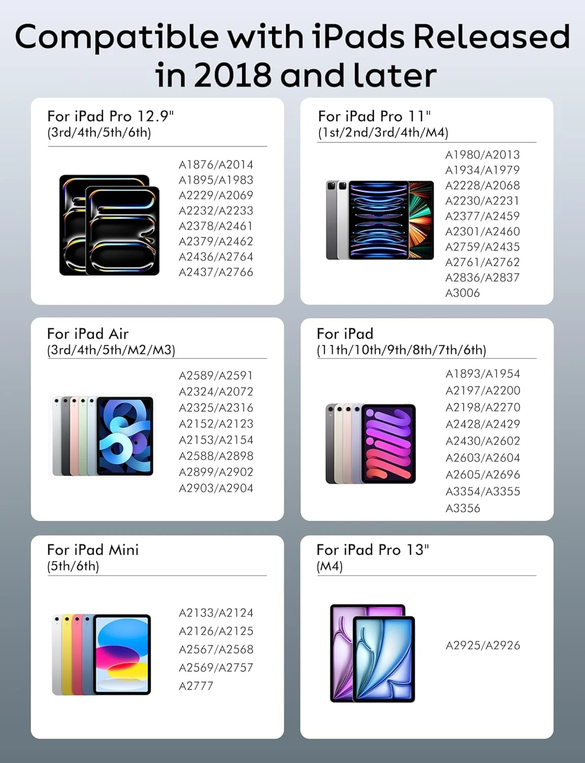 📱 Wide Compatibility – works with iPad 6/7/8/9/10, iPad Pro 11″/12.9″, iPad Air 3/4/5, iPad Mini 5/6