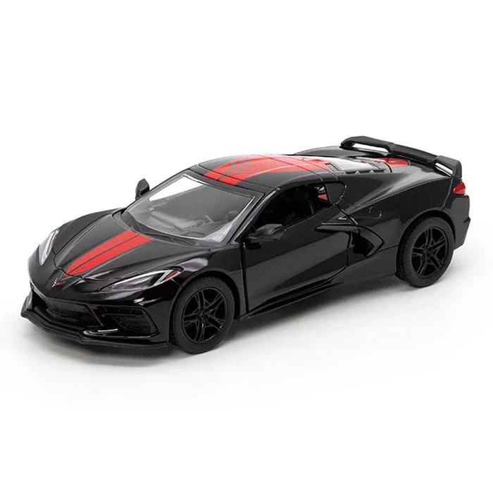Experience the thrill of modern American muscle with the KiNSMART 2021 Corvette Livery Edition, a sleek 1:36 scale die-cast metal model car that brings track-ready styling to your collection. Inspired by racing liveries, this model boasts aggressive looks, realistic detailing, and interactive features.