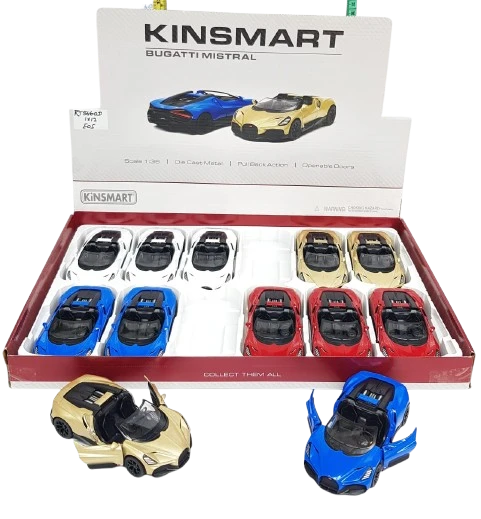KiNSMART Bugatti Mistral | 1:36 Scale Die-Cast Model Car | Pull-Back Action, Openable Doors – RTS460D (Collectible Toy Car)