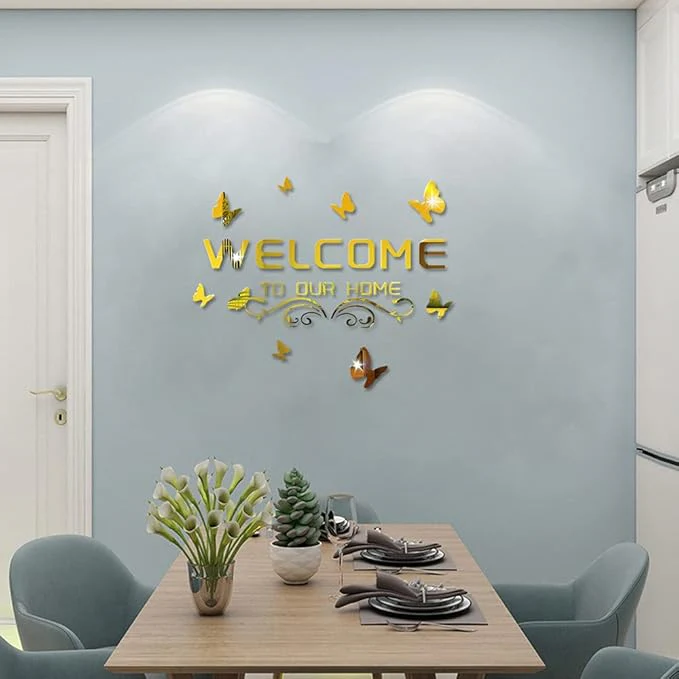 Welcome With Butterflies Wall Mirror – Mirror For Home Decor | Modern Wall Decal